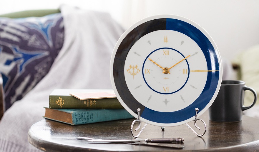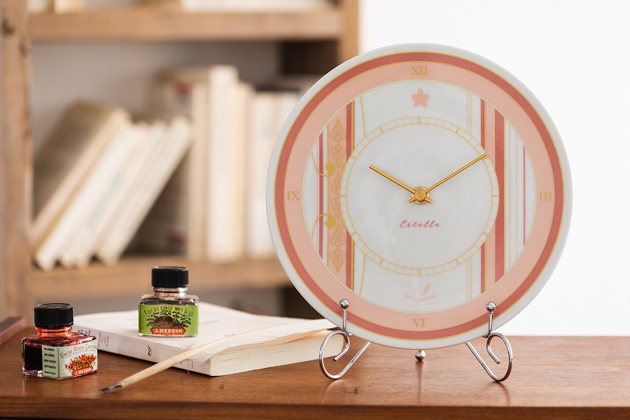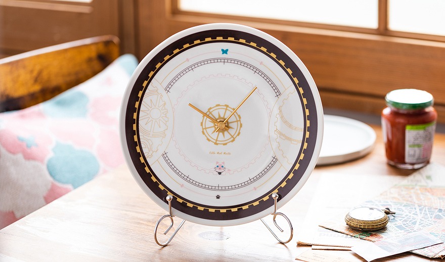 エルが持っている懐中時計をイメージした陶磁器製のクロックです。盤面の左右には、“ルドガー”と“ヴィクトル”をイメージしたプリントが。
