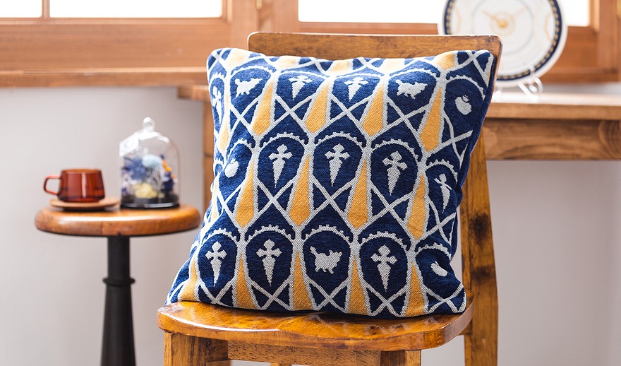 お部屋の雰囲気を変えたいときは、クッションを変えるのがオススメ! ダイナミックな紋章が入ったアルフェンモデルなら、無地のクッションと組み合わせても。