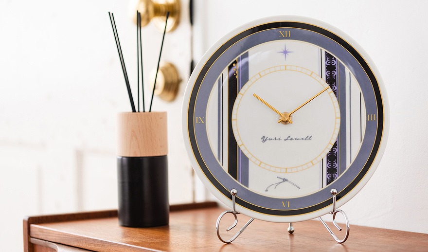 ユーリのイメージカラー・パープルを基調としたマルチカラーストライプのクロックです。ストライプの中には、衣装の柄や、“ニバンボシ”の鞘の装飾を組み込んでいます。