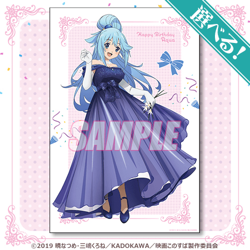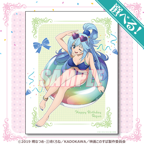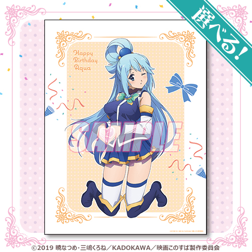 商品は“アクシズ教”のご神体にして、水を司る女神・アクアの誕生日を記念した、アニメ新規描き下ろしイラストによるオリジナルグッズとなります。