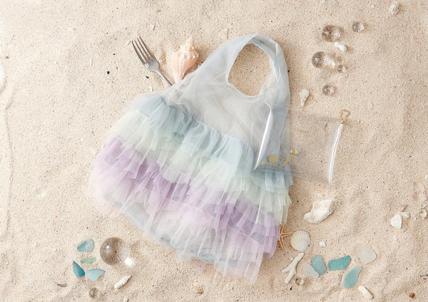 アリエルの世界観を表現したチュールバッグです。くしゅくしゅっと丸めて付属のビニールポーチに入れて持ち運びが可能。 ちょっとそこまでのお出かけにうれしいサイズ感。