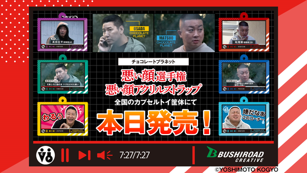 人気お笑いコンビ「チョコレートプラネット」のYouTubeチャンネルで話題の『悪い顔選手権』がアクリルストラップになって登場!