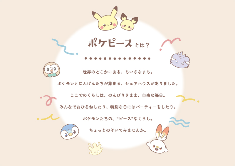 “ポケピース”には、シェアハウスでのんびりきままな暮らしを楽しむ、個性豊かな7匹のポケモンたちが登場します。本日、7月29日より各種ポケモン公式SNSにてコンセプトムービーが公開中。