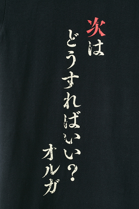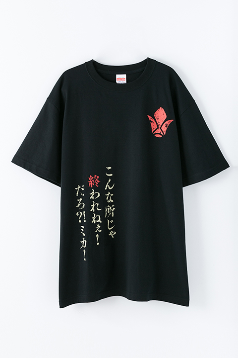 作中のオルガ・イツカの名ゼリフを大胆にあしらいました。胸元には鉄華団のマーク入り。