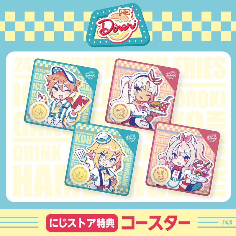 にじさんじオフィシャルストアにて“2434DINER”のグッズを税込3,000円以上ご購入いただいた方に、特典コースターをプレゼント!