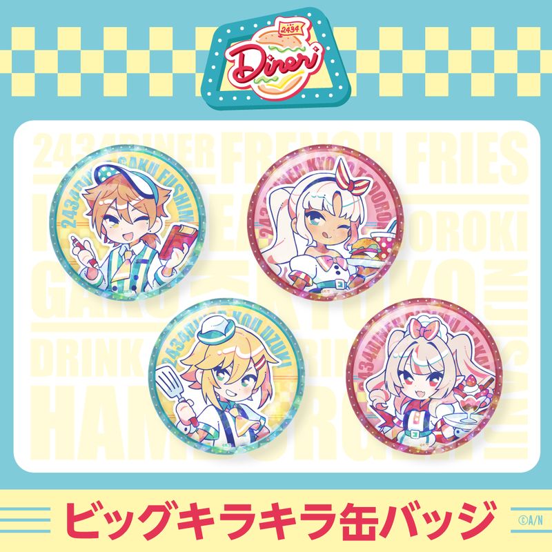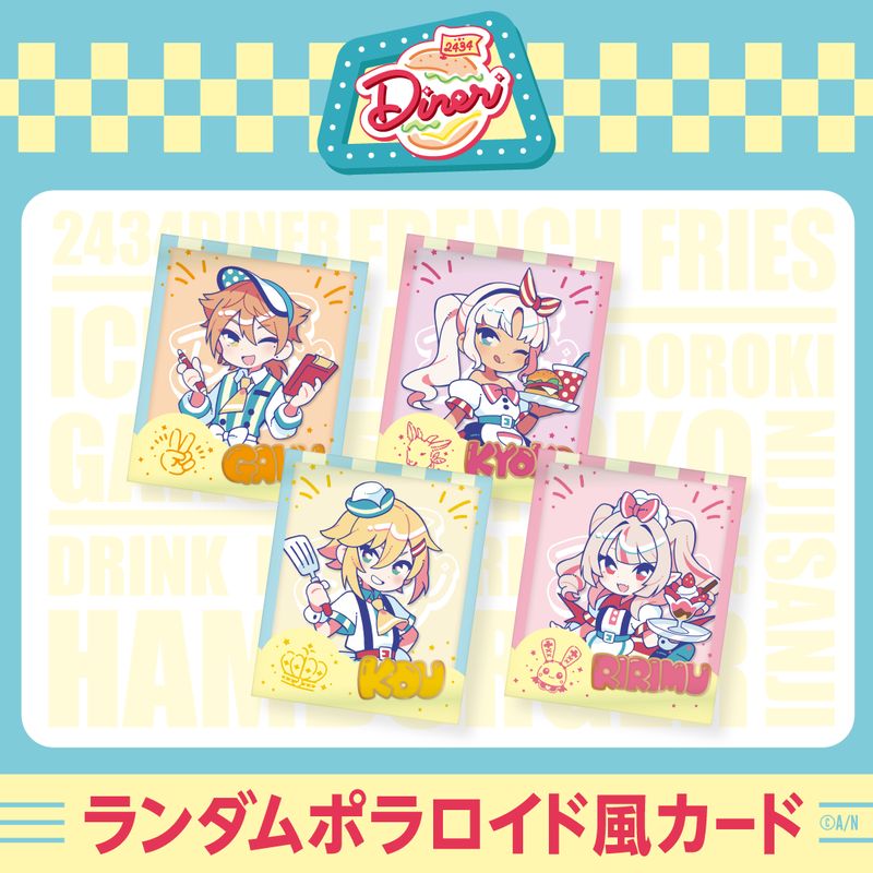 にじさんじからアメリカンダイナーをコンセプトにした新グッズが登場。卯月コウ、轟京子、伏見ガク、魔界ノりりむの描き下ろしビジュアルを使用したアクリルスタンド、ビッグキラキラ缶バッジ、ランダムポラロイド風カード。イメージグッズのラバーキーホルダー、ミニプレートも各4種展開!
