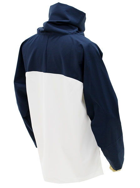 日本の国内工場で仕立てられたストレッチ性のあるプルオーバーは、普段使いはもちろん部屋着としても活躍できる。生地には防水・撥水加工が施されており、透湿性も備えているので汗や湿気などを外に逃がす仕様となっている。