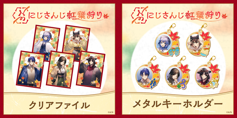 和洋折衷をテーマにした、秋を彩る“にじさんじ紅葉狩りグッズ2022”が登場!グッズラインナップはアクリルスタンド、巾着、クリアファイル、メタルキーホルダー、花札風カードの5種類です。