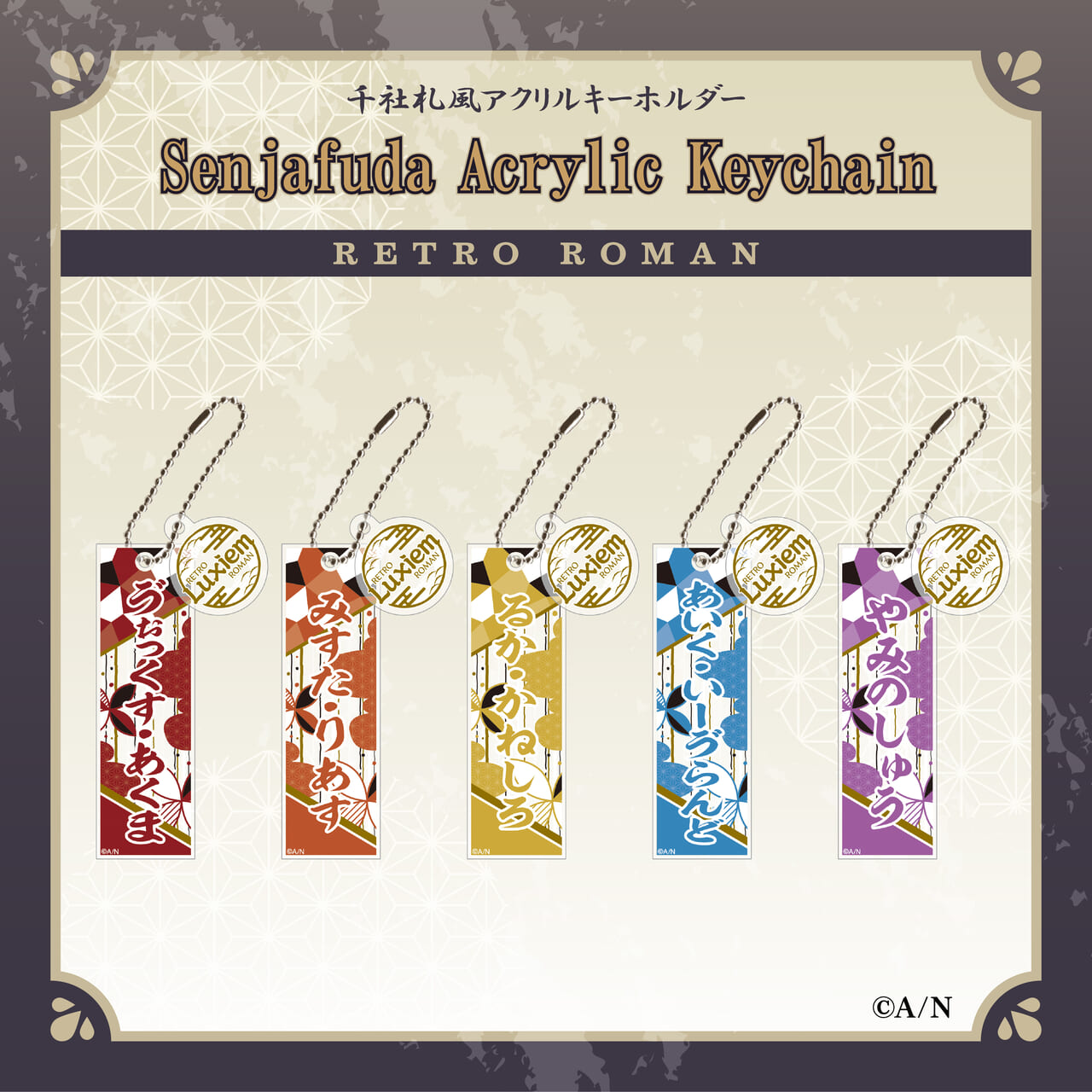 ラインナップは、和モダンな装いの描き下ろしビジュアルを使用した“アクリルスタンド”、“ランダム缶バッジ”、“クリアファイルセット”、“千社札風アクリルキーホルダー”、“かんざし”、“扇子”の計6種類。