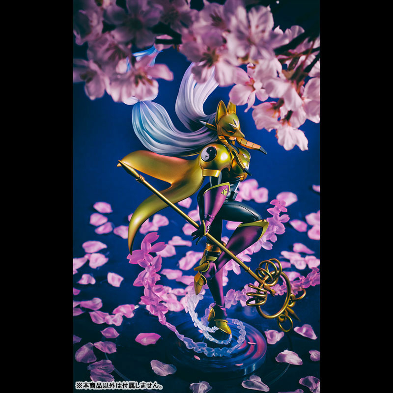 進化シーンをモチーフに、湖面に凛と佇むシルエットと夜桜のエフェクトがサクヤモンの美しさを際立てます。アーマーの彩色、金剛錫杖のエッジのある造形にも注目です。