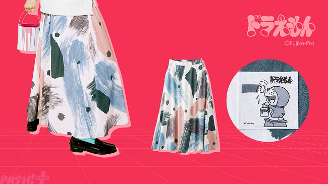 【NEW】ドラえもん 重力ペンキを塗ったみたいなアート柄スカート〈ピンク〉