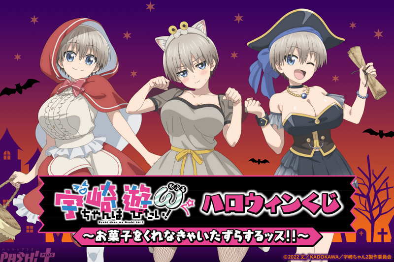 KADOKAWAは、運営するオンラインくじサービス“くじ引き堂”において、TVアニメ『宇崎ちゃんは遊びたい!ω』のオリジナル商品が手に入る『「宇崎ちゃんは遊びたい!ω」ハロウィンくじ ~お菓子をくれなきゃいたずらするッス!!~』を、10月27日17:00より販売します。