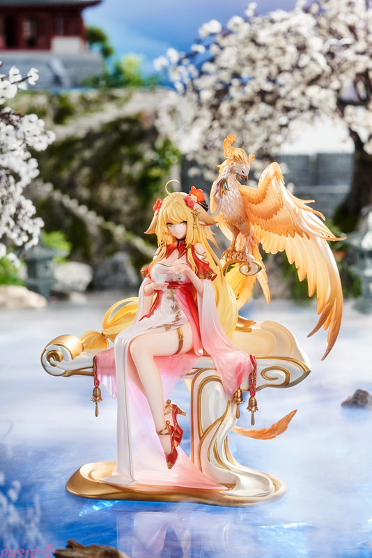 チャイナドレスに身を包んだ塗山紅紅が鳳凰を連れ添い祥雲に腰掛けてお茶を飲んでいる瞬間を切り取った造形となっています。妖狐一族の王であり、クールさと優しさを兼ね備えた塗山の主“塗山紅紅”をぜひお手元にお迎えください。