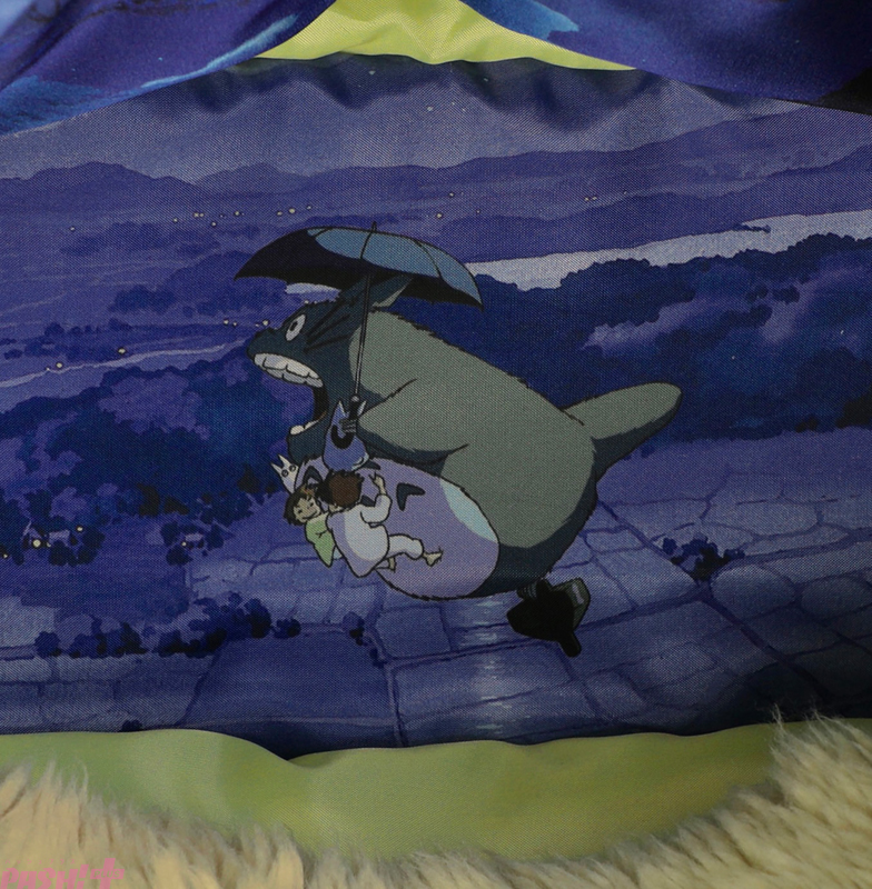 バッグの中をのぞき込むと、トトロのお腹にしがみついて風になったサツキとメイに出会うことができます。ファー部分はトトロのおなかを表現しており、ふんわりとやさしい触り心地です。