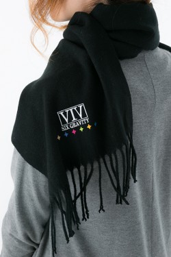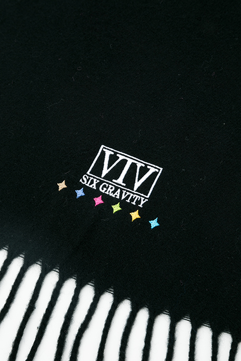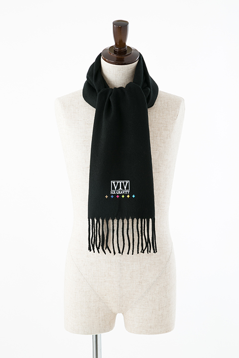 師走 駆、睦月 始、如月 恋、弥生 春、卯月 新、皐月 葵から成るSix Gravityをイメージした黒ベースのマフラーには、ユニットメンバーたちのイメージカラーの煌めきをデザイン。