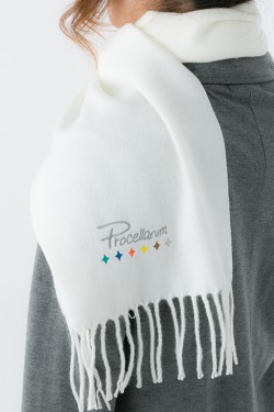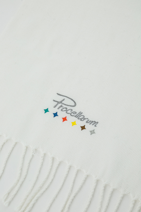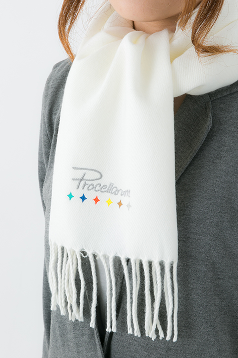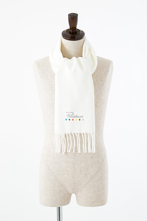 水無月 涙、文月 海、葉月 陽、長月 夜、神無月 郁、霜月 隼で構成されるProcellarumをイメージした白ベースのマフラーには、ユニットメンバーたちのイメージカラーの煌めきをデザイン。