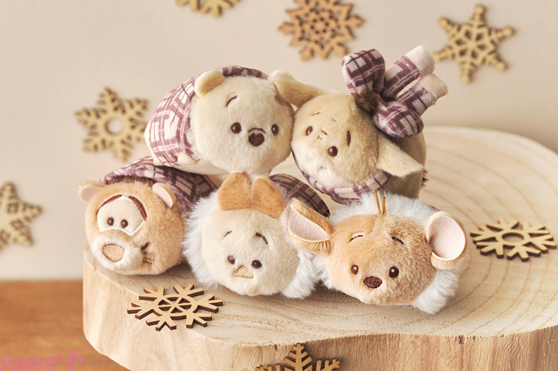 大人気シリーズ“TSUM TSUM(ツムツム)”より、暖かな装いをしたプーさんと仲間たちのぬいぐるみが登場します。優しい色合いや、うるうるとした茶色い目がポイントです。