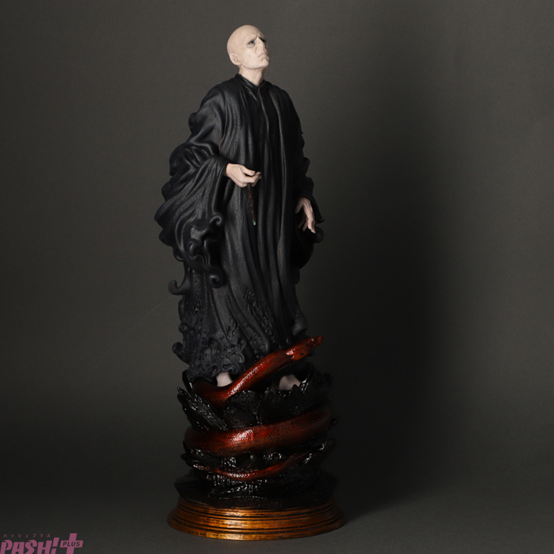 右手に持つニワトコの杖は暗闇でも怪しい光を放ち、ヴォルデモート卿の足元にはナギニの姿もあり、蛇らしい鱗の質感と艶めかしい光沢まで忠実に表現されている、ファン必見の限定アイテムです。