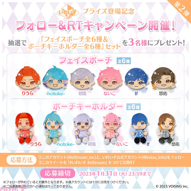人気歌い手グループ“いれいす”よりオリジナルプライズ第2弾が登場! りうらや初兎のかわいいフェイス柄ポーチやポーチキーホルダーが展開