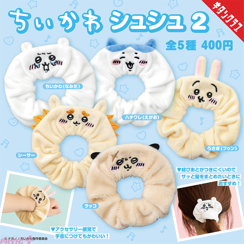 『ちいかわ シュシュ』に待望の第2弾が登場! 生地はふっくらとした優しい触り心地で、カプセルトイとは思えないクオリティに仕上げました。