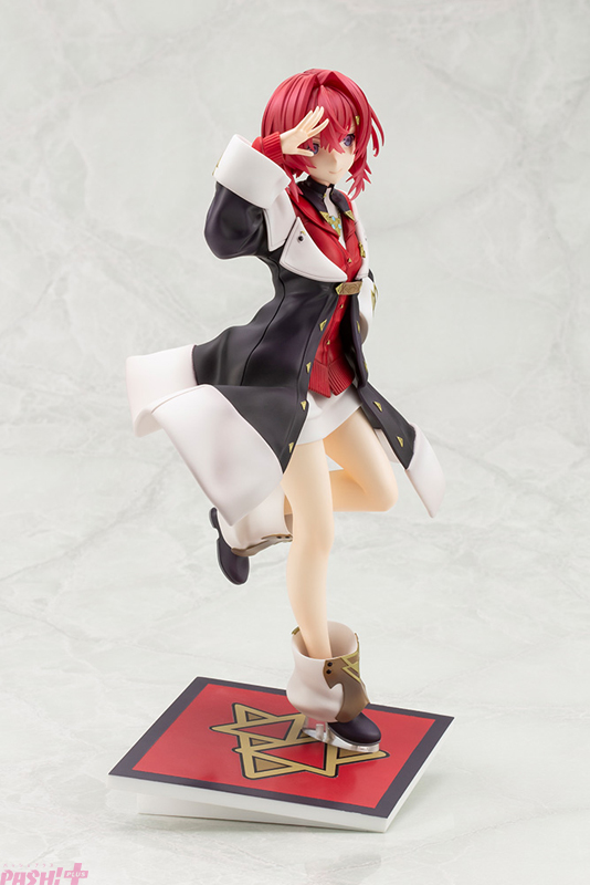 ボリューム感のあるコートやパンツのシワ感、ブーツのディテール等の細かい部分にもこだわって制作。真紅色の髪の毛はクリアパーツを採用しており、造形の繊細さと透明感が相まって軽やかな仕上がりに。金のヘアピンもバッチリ造形しています。