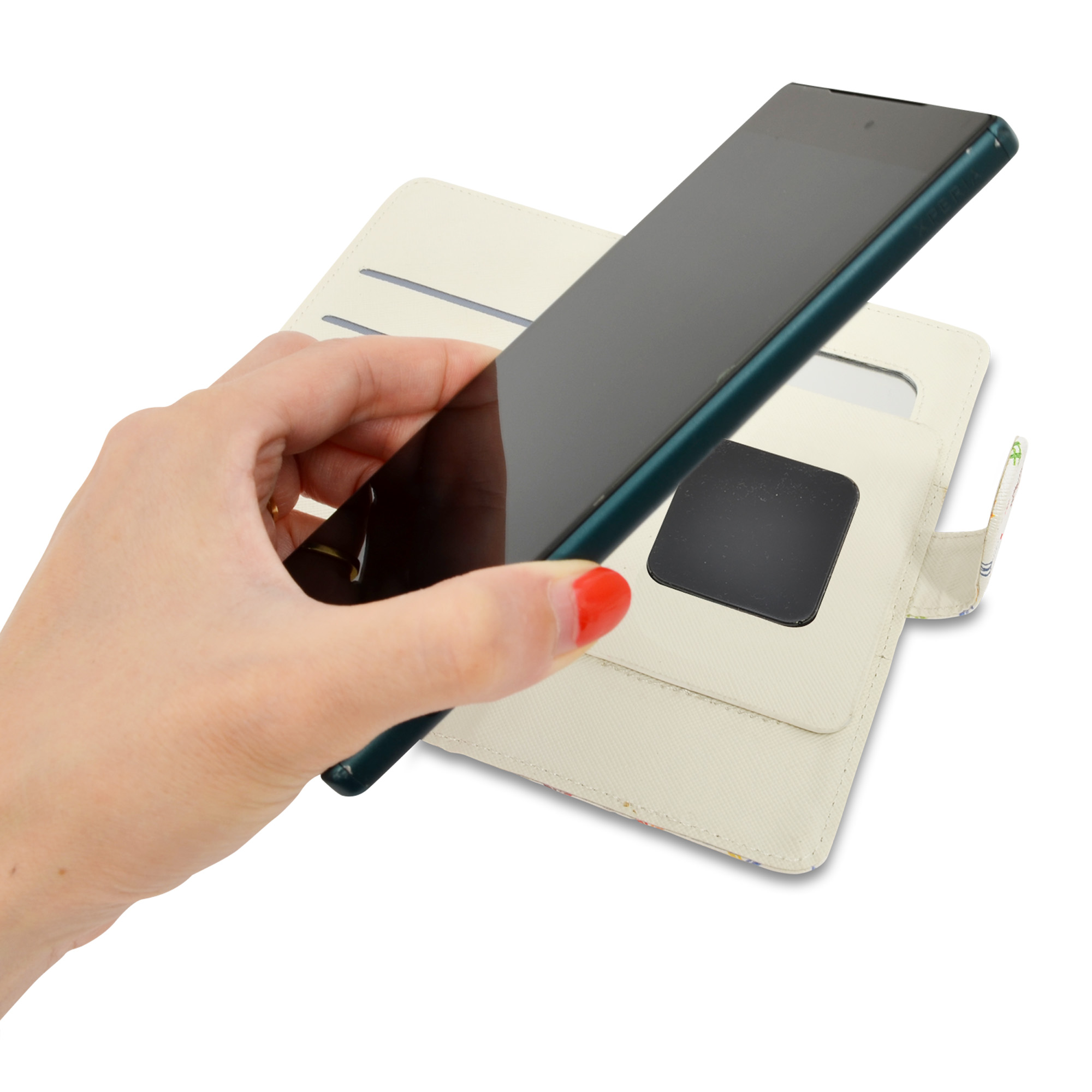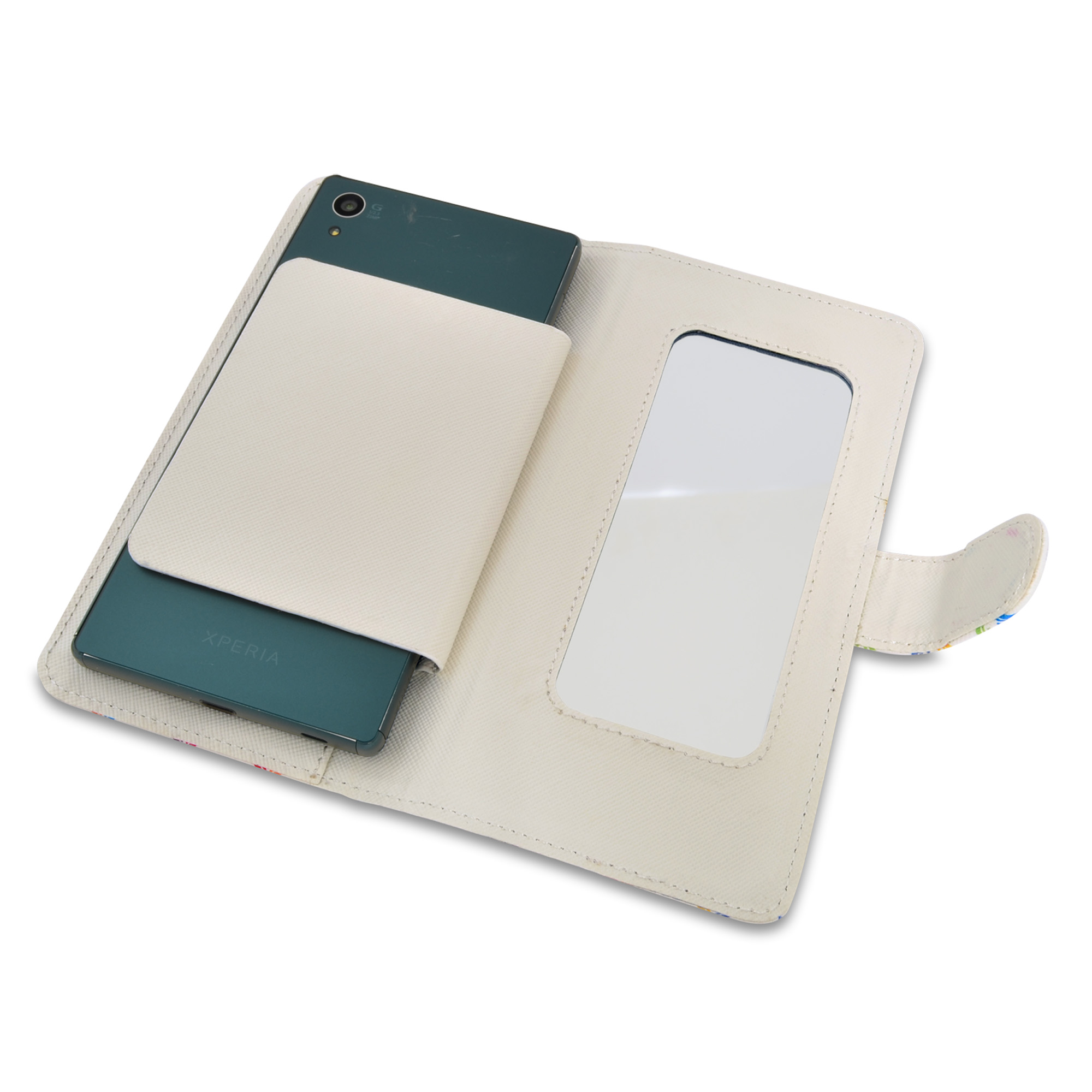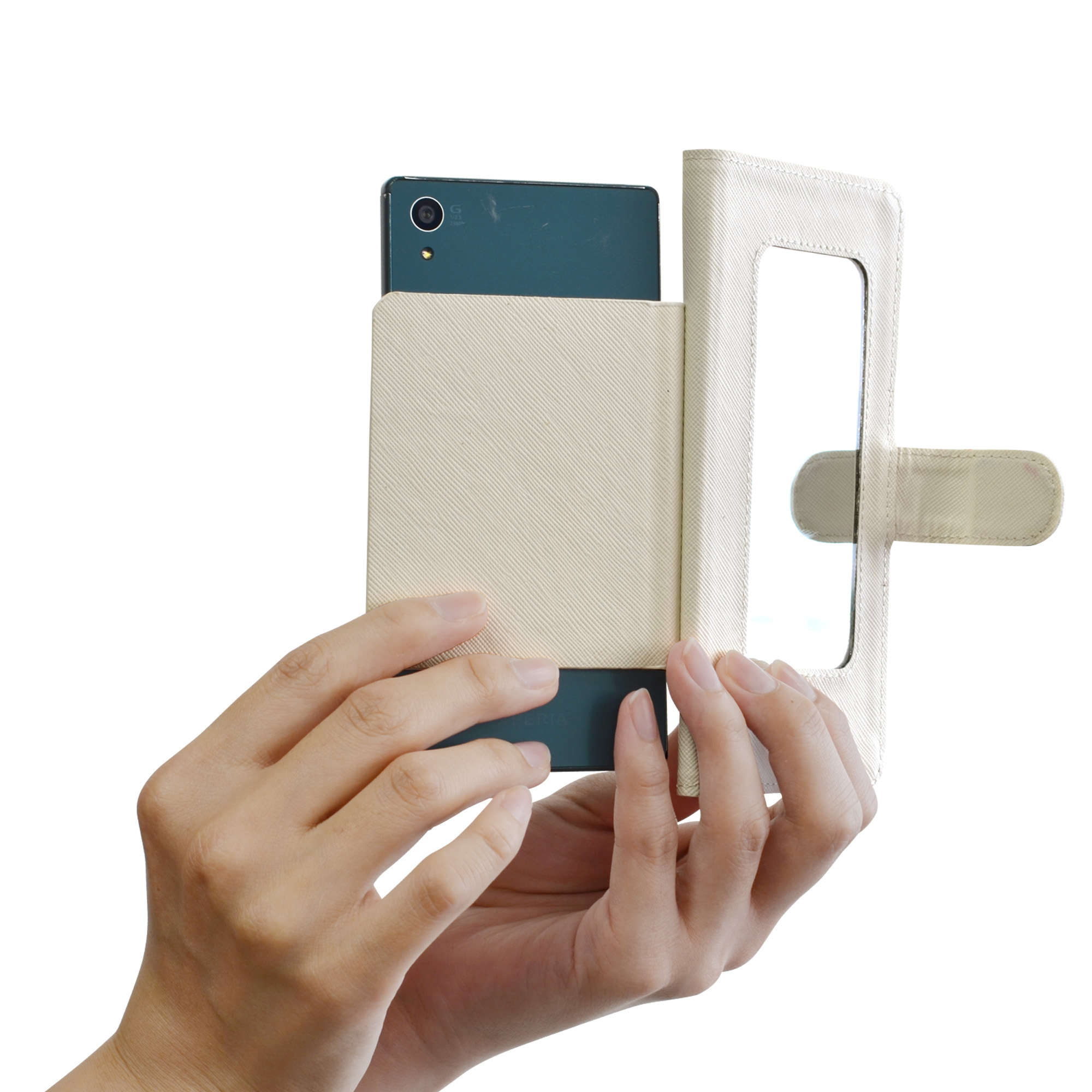 本体サイズ:幅約8cm×高さ約16cm×厚み約1.6cm(カードスロット×2、ロングポケット×1、ミラー×1、開閉マグネット式)