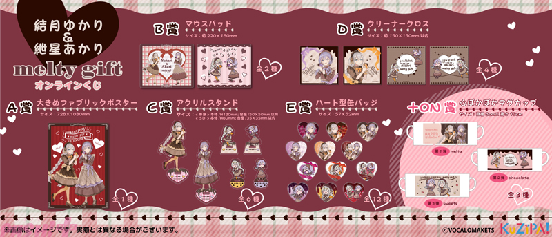 HIKEは、運営するオンラインくじサービス“KuZiPA!(クジパ)”において、ふりふりメイド服に身を包んだ『結月ゆかり&紲星あかり melty gift」オンラインくじ』を2023年2月10日12:00より発売開始します。グッズはすべてクジパ限定描き下ろしデザインとなります。