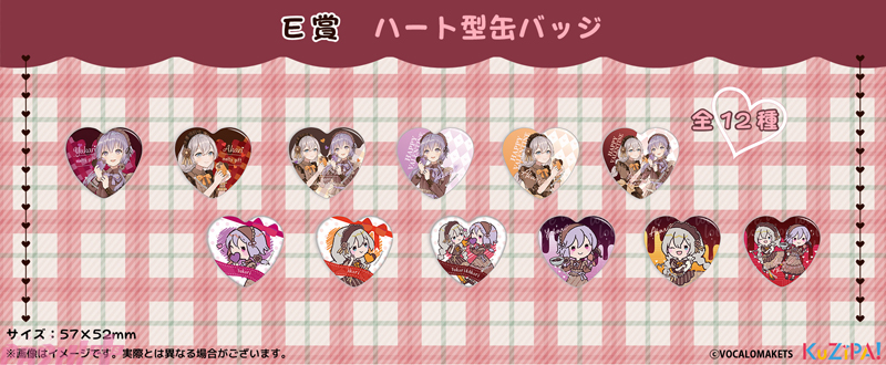 描き下ろしイラストを使用したハート型缶バッジ! ぜ~んぶ集めてコレクションしちゃおう♪