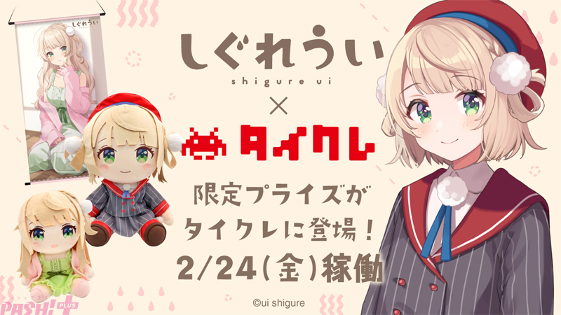タイトーは、いつでもどこでもクレーンゲームが楽しめる“タイトーオンラインクレーン(タイクレ)”にて、イラストレーターかつVTuberとして大活躍の“しぐれうい”とコラボレーションし、本人描き下ろしのイラストを使用した限定プライズを2月24日21:00から展開いたします。