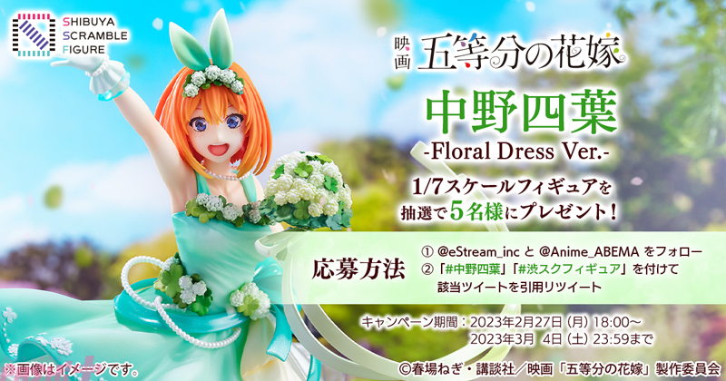 また、予約販売開始を記念してプレゼントキャンペーンを実施。『中野 四葉 -Floral Dress Ver.- 1/7スケールフィギュア』が抽選で5名に当たります。