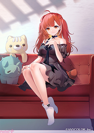 イラストレーターほーじろ氏に、タイクレ限定プライズ専用として、髪色と瞳の色とのコントラストが美しい黒色のワンピース姿の“ラトナ・プティ”を描き下ろしていただきました。オフショルダーのワンピースに、チョーカーを着用しており、微笑みながら小首を傾けている、いつもより少し大人っぽい雰囲気にご注目ください。