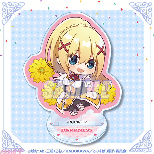 ダクネスの華やかな魅力を描いたイラストの商品や、かわいいミニキャラの商品など、ダクネスの魅力を詰め込んだ商品とともに、ダクネスの誕生日を祝ってみては?