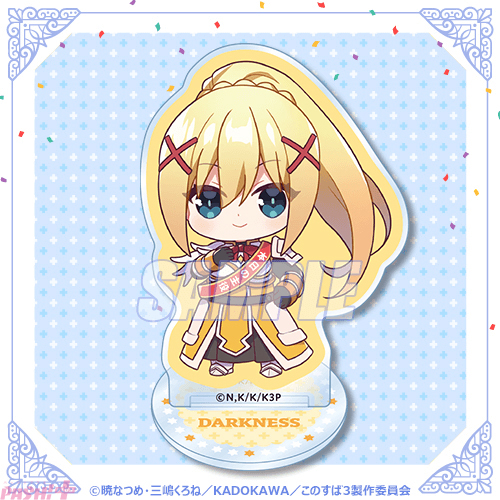 商品は、ダクネスの誕生日を記念した、アニメ新規描き下ろしイラストによるオリジナルグッズとなります。