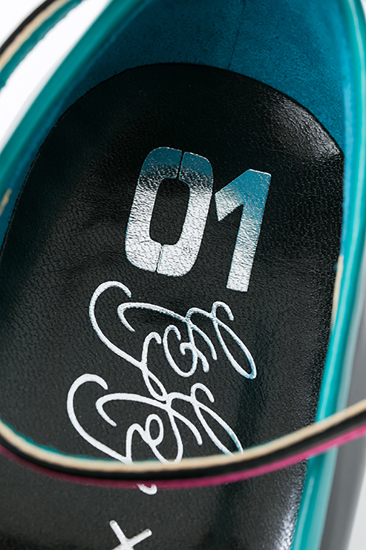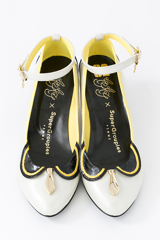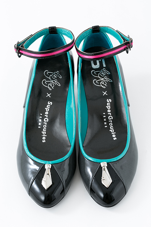 それぞれのキャラクター衣装が落とし込まれたデザインには、目を引くヒール部分や付属するストラップなどにこだわりが見える。
