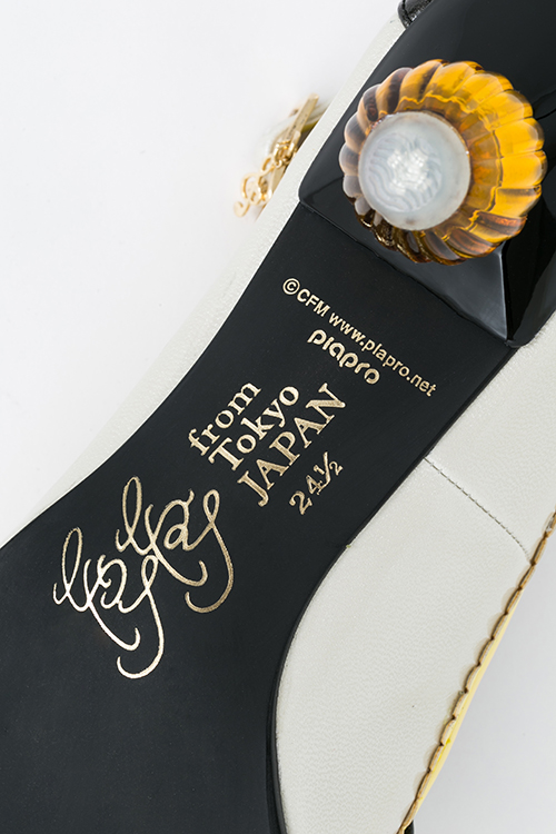 素材:アッパー=ポリウレタン100%/裏中敷=ポリウレタン100%/テープ=ポリエチレン100%/バックル=真鍮/金具=キャスト、エポキシ樹脂(巡音ルカモデルのみ)/ヒール=ABS樹脂/本底=合成ゴム
