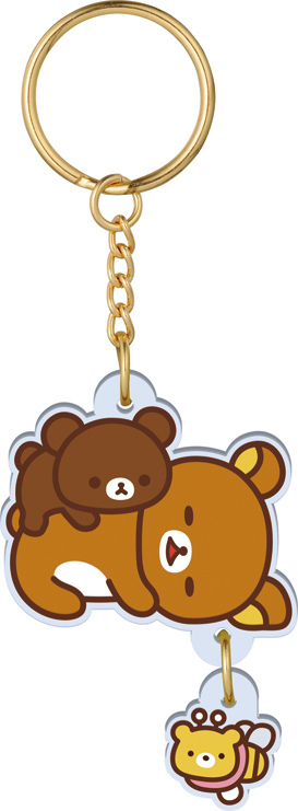かわいいポーズの「リラックマ」たちをデザインしたラバーキーホルダーです。“どんぐり”や“くまんばち”の小さいパーツが付いています。