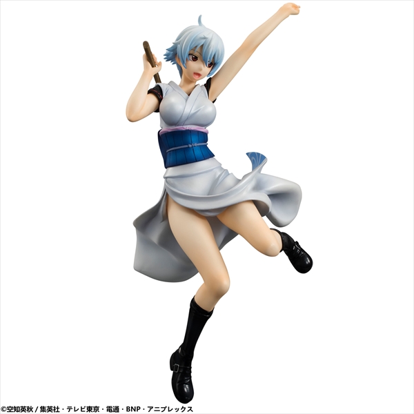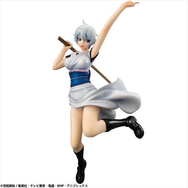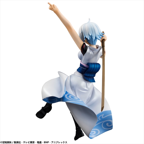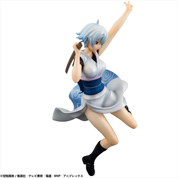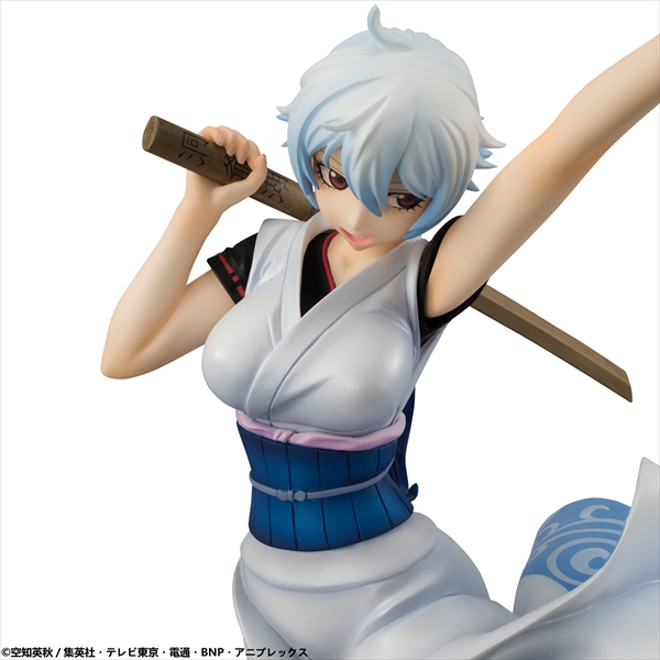 本商品は、アニメ『銀魂』第275話から第277話にかけて放送された、メインキャラクターの性別が入れ替わってしまう『性転換篇』に登場する主人公・坂田銀時が女体化した姿“坂田銀子”のフィギュア。女性の姿になり話題となった銀子さんの魅力的な表情やプロポーションを余すことなく再現しており、原型製作“ろいん”の手によって、袴がめくれ上がるほど飛び跳ねる躍動感あるポージングで立体化している。