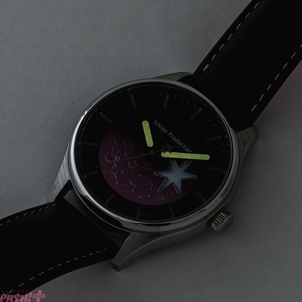 針もアクアブルーと☆が組み合わさっています。ベルトには本革を使用。裏面はアクアがサラっとサインを入れてくれました! かっこいい!