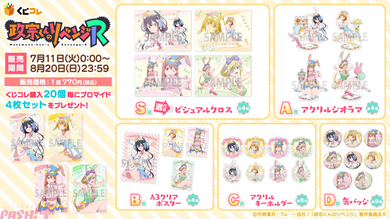 エディアの子会社・ティームエンタテインメントは、2023年7月11日0:00より『くじコレ TVアニメ『政宗くんのリベンジR』』を販売開始しました。