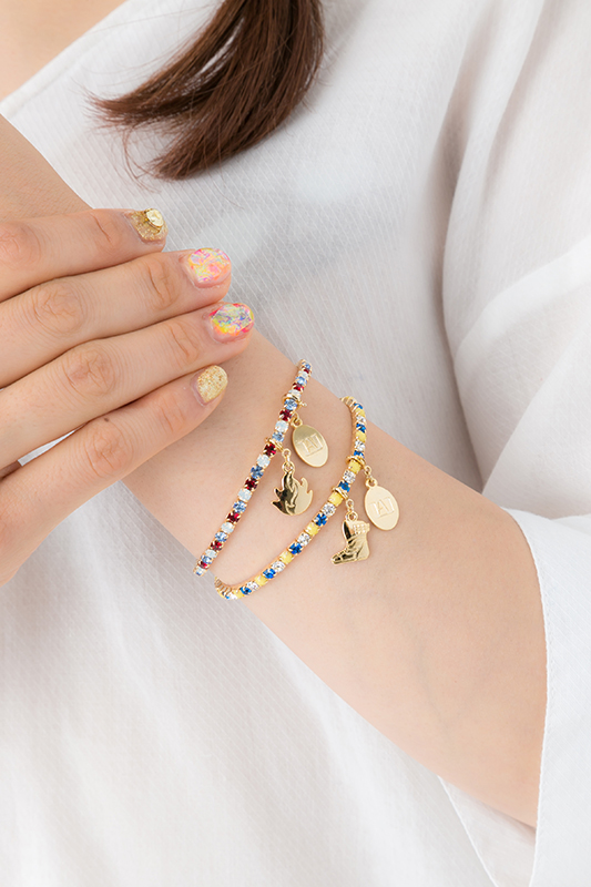 ブレスレットには、緑谷出久・爆豪勝己・飯田天哉・轟 焦凍ら4人のそれぞれのモチーフと、雄英高校のエンブレムがデザインされたゴールドのチャームが付いている。ブレスレットののキラキラと輝くストーンは、それぞれのキャラクターのヒーローコスチュームカラーを採用。