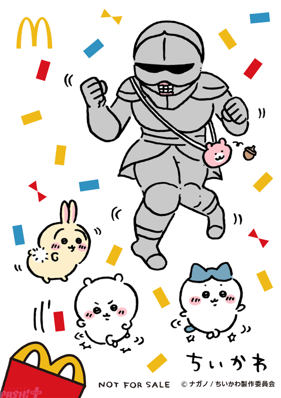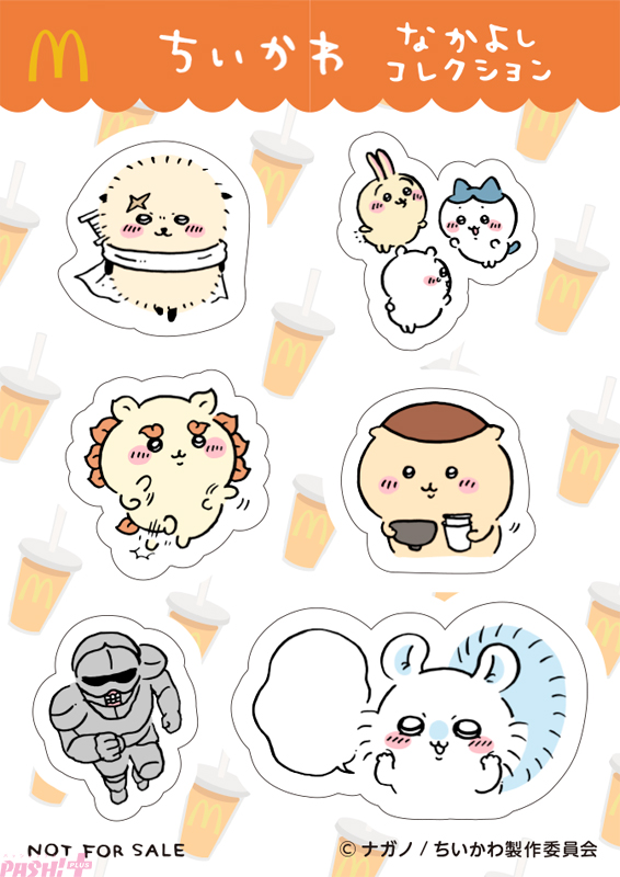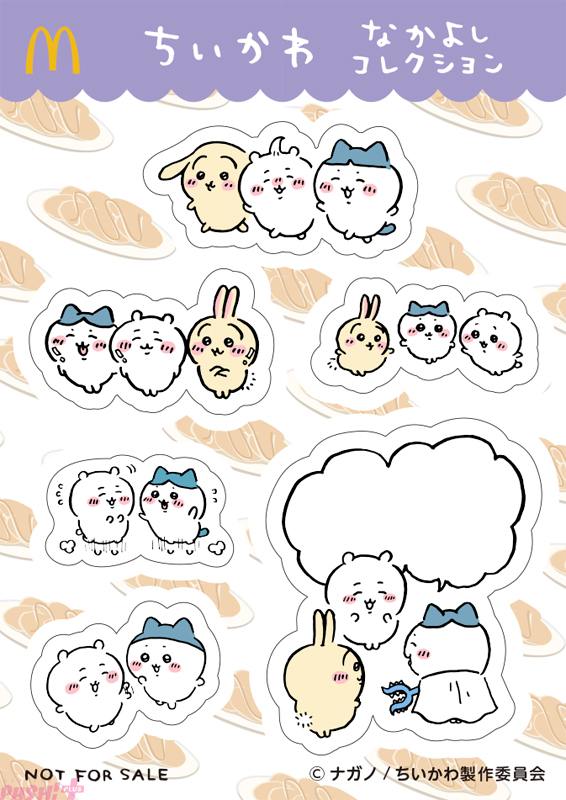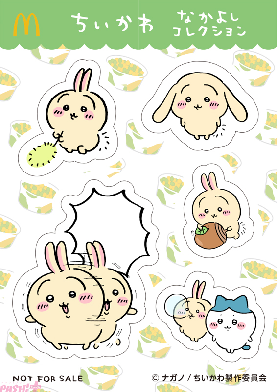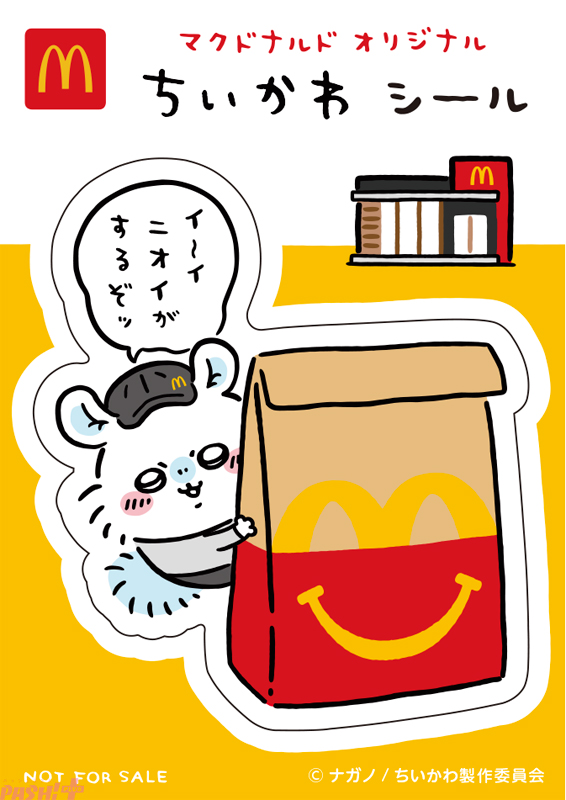 Twitter発の人気キャラクター『ちいかわ』がハッピーセットに初登場です。ちいかわやハチワレ、うさぎなどのキャラクターのマクドナルドオリジナルデザインのシール1枚を含む3枚組のシールセットになっており、全5種類が登場します。