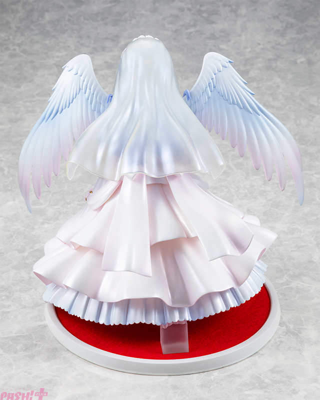 本アイテムは、キャラクター原案・Na-Gaさんが描き下ろしたイラストをモチーフに、少し上目遣いで頬を赤らめた姿で立体化。作中でも印象的な翼はクリアパーツに繊細なグラデーション彩色を施して再現しており、どこから眺めてもかなでの美しさが楽しめる仕上がりとなっています。