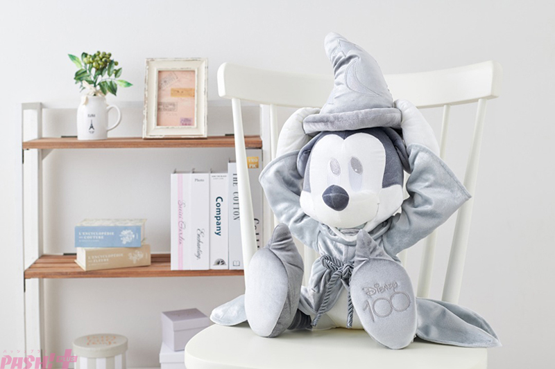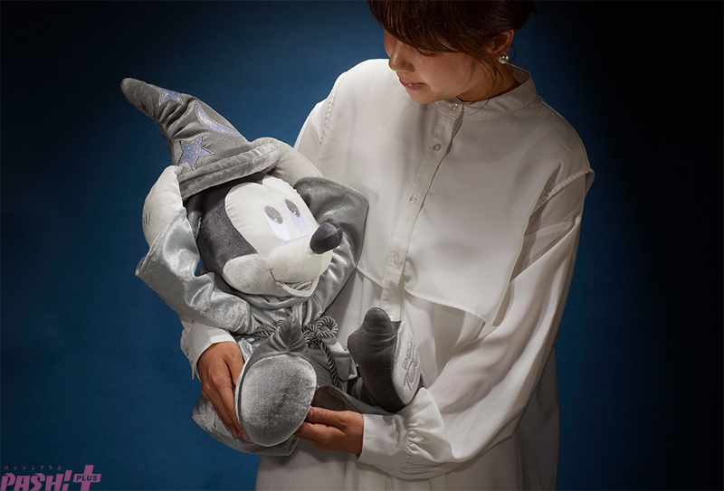 ディズニーの長編アニメーション映画の中でも傑作として語り継がれている“ファンタジア”のシーンより、魔法使いの帽子をこっそりかぶったミッキーを立体化したぬいぐるみで、視線が上を向いているミッキーのいたずら心が垣間見えるような表情を再現しています。立体化される機会の少ない貴重なこのミッキーを、ディズニー100周年のコンセプトカラーであるプラチナでデザインしました。