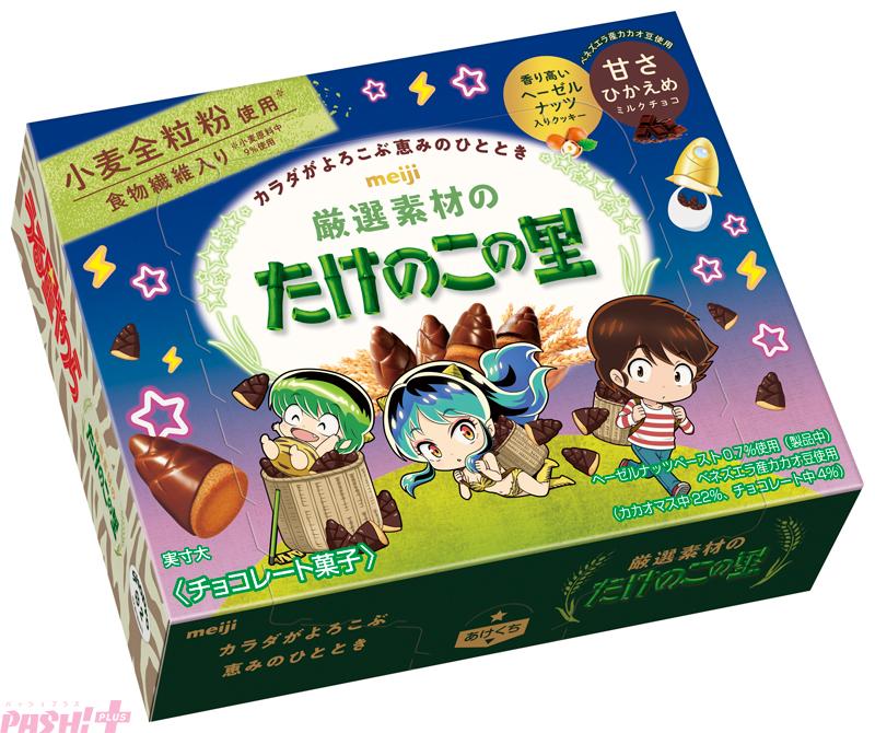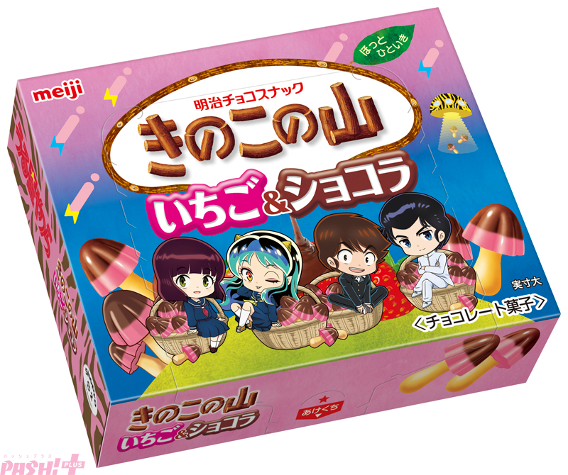 『きのこの山いちご&ショコラうる星やつら』、『たけのこの里いちご&ショコラうる星やつら』、『厳選素材のきのこの山うる星やつら』『厳選素材のたけのこの里うる星やつら』の4種とのコラボレーションが決定。9月19日より全国で発売。コラボレーションしたパッケージは、『うる星やつら』の描き下ろしデザインを使用しており、全12種類を楽しめます。