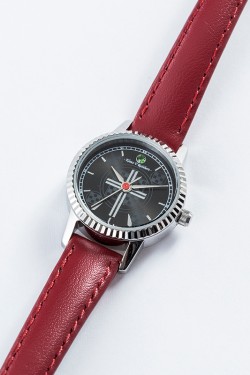 クラウス・V・ラインヘルツをモチーフにした時計。盤面にはプロスフェアーをイメージした模様が入っており、12時の部分にはクラウスの瞳の色をイメージした緑のストーンが入っている。また盤面の上には、クラウスのナックルガードをモチーフにした十字架が煌めている!