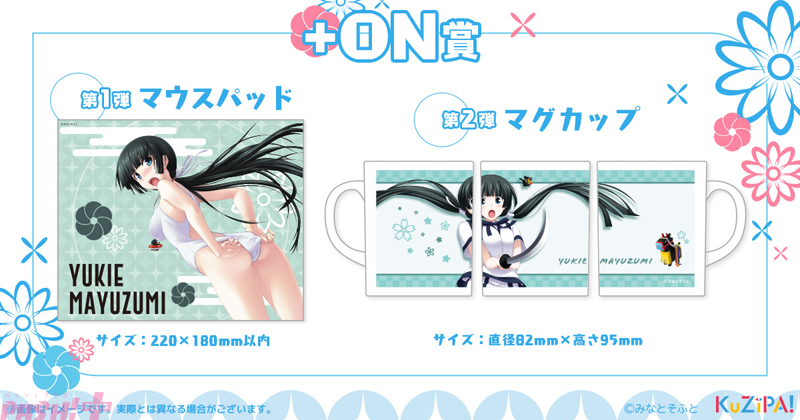 くじを引くごとに自動抽選にて豪華景品ゲットのチャンスがある「+ON賞」では、オリジナルマウスパッドとマグカップがそれぞれ15名の方に当たります。今後も「まじこい」キャラクターたちのオリジナルグッズの販売を予定していますので、続報をお待ちください。