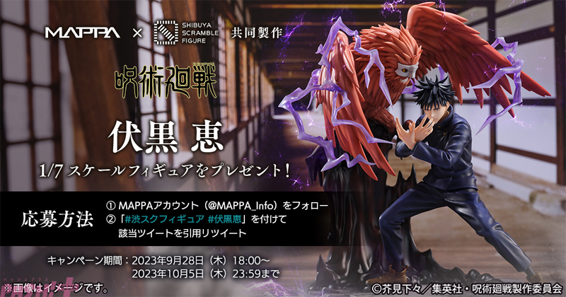 予約販売開始を記念してプレゼントキャンペーンが開催。MAPPA公式X(旧Twitter)をフォロー、該当ポストを引用ポスト(「#渋スクフィギュア」と「#伏黒恵」を添えて投稿)した人の中から「伏黒恵」を抽選で3名にプレゼント!