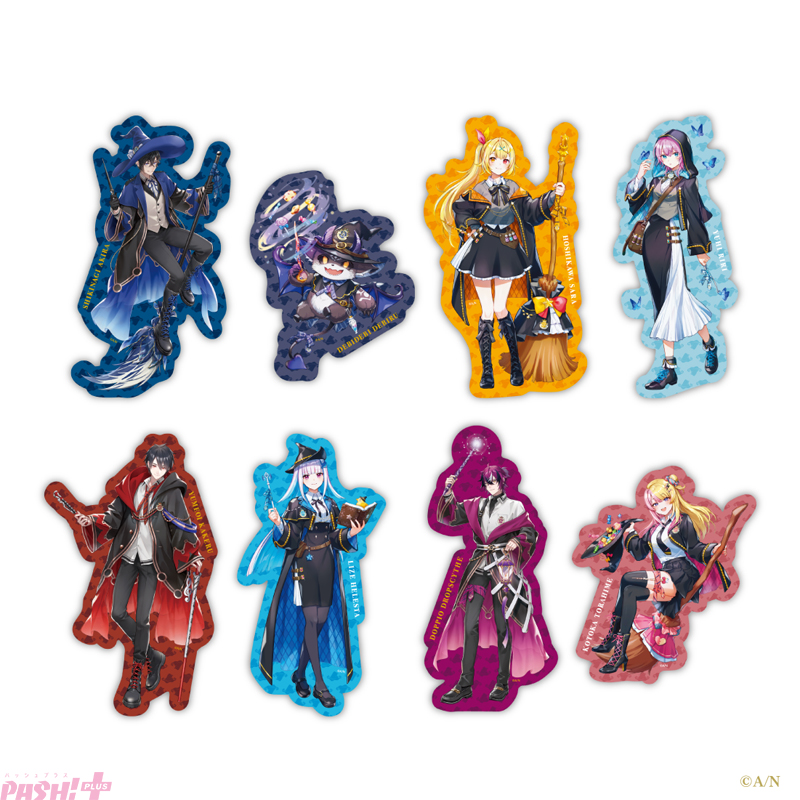 四季凪アキラ、でびでび・でびる、星川サラ、夕陽リリ、夢追翔、リゼ・ヘルエスタ、ドッピオ ドロップサイト、虎姫 コトカ 8名のライバーが参加する「にじさんじ ハロウィン2023グッズ」のラインナップは、ランダムチェキ風カード、ワッペン ステッカー、メタル缶バッジ、ダイカット クリアカード、アクリルキャンディーキーホルダー、アクリルスタンド、スカーフの7種類。