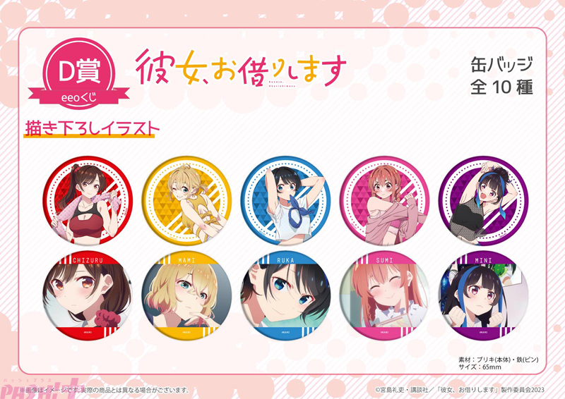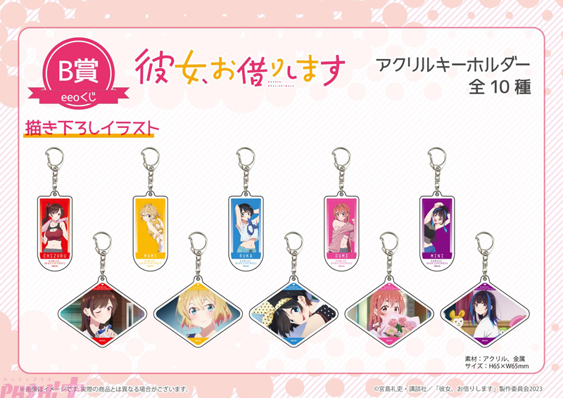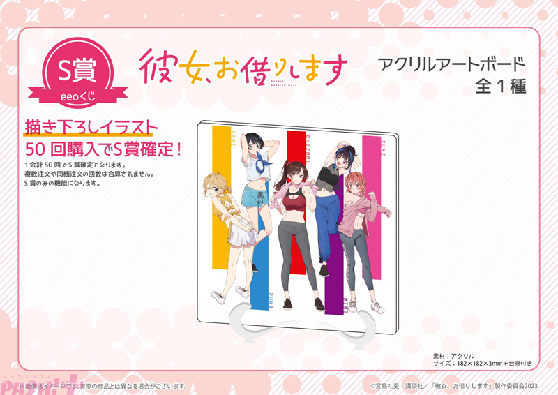 2023年7月からシリーズ第3期が放送され、「面白すぎる!」と盛り上がりを見せたTVアニメ『彼女、お借りします』。そんな大人気作品の「eeoくじ」には、“トレーニングウェア”がテーマの描き下ろしイラストを使用した豪華景品が大集合しました。
