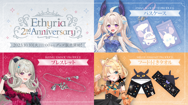 ANYCOLORが運営するVTuber/バーチャルライバーグループ「NIJISANJI EN」は、2023年10月10日(火)11時(JST)よりVTuberユニット『Ethyria』の「Ethyria 2nd Anniversary」を販売開始します。